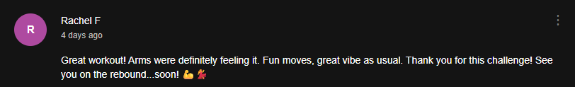 “I feel so good & empowered after every video! Y'all are killing it 💪🏼😎🫶🎉” -Mendy